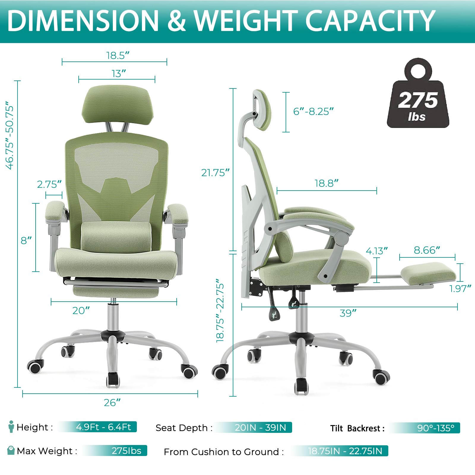 - 【Stable & Secure structure】Our swivel chair with 5-point base uses the same material as the built-in metal frame. The strong 5-point base ensures excellent durability and stability with the maximum weight up to 275 lbs. Featuring a high-quality 360-degree swivel caste, this desk chair allows you to run smoothly as you want, whether on wooden floors, carpets or other flooring.