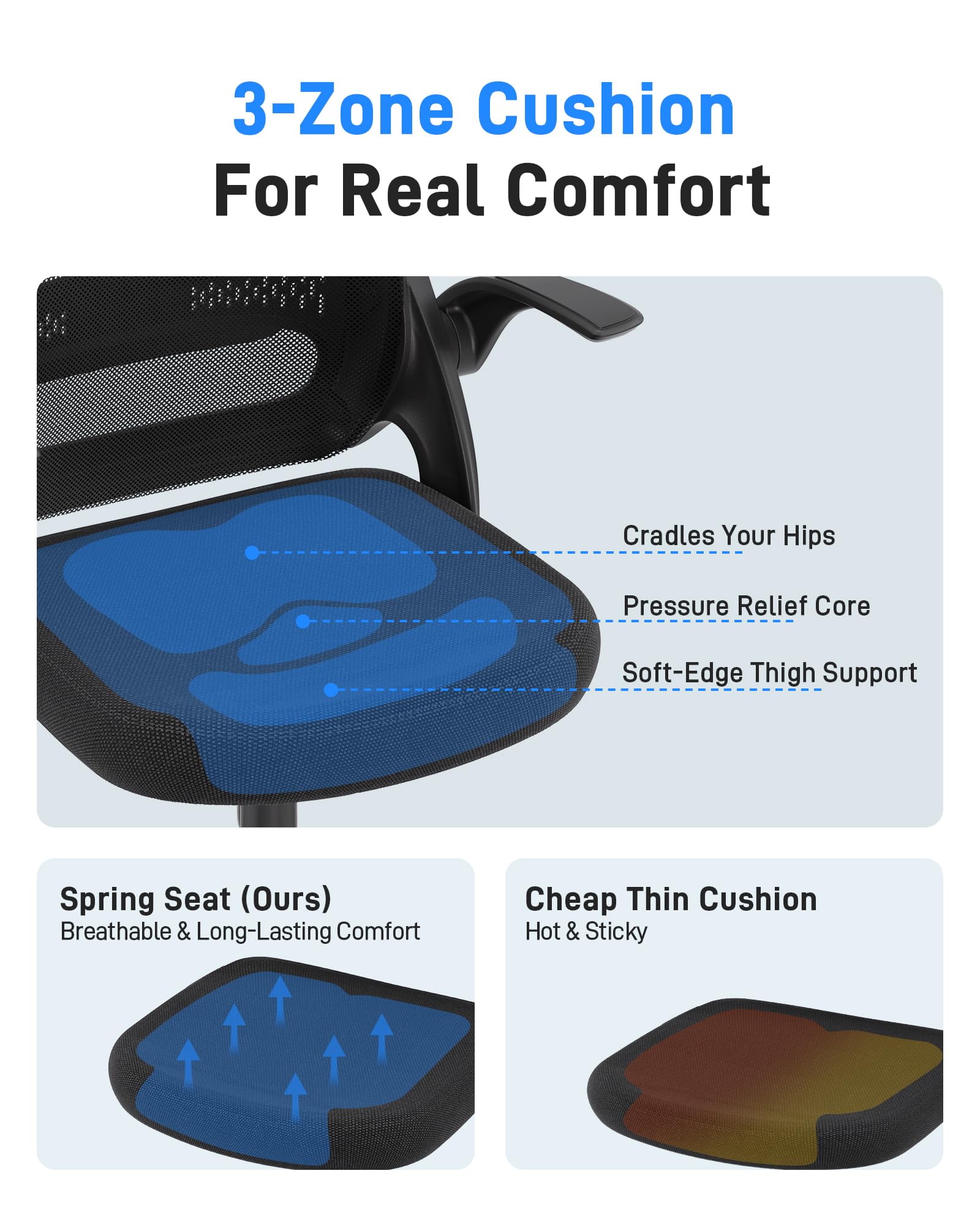 - All-Day Comfortable Seating: A breathable mesh back and thick 3-inch high-density seat cushion supported by a solid coated steel base offer maximum comfort, even during extended sitting
