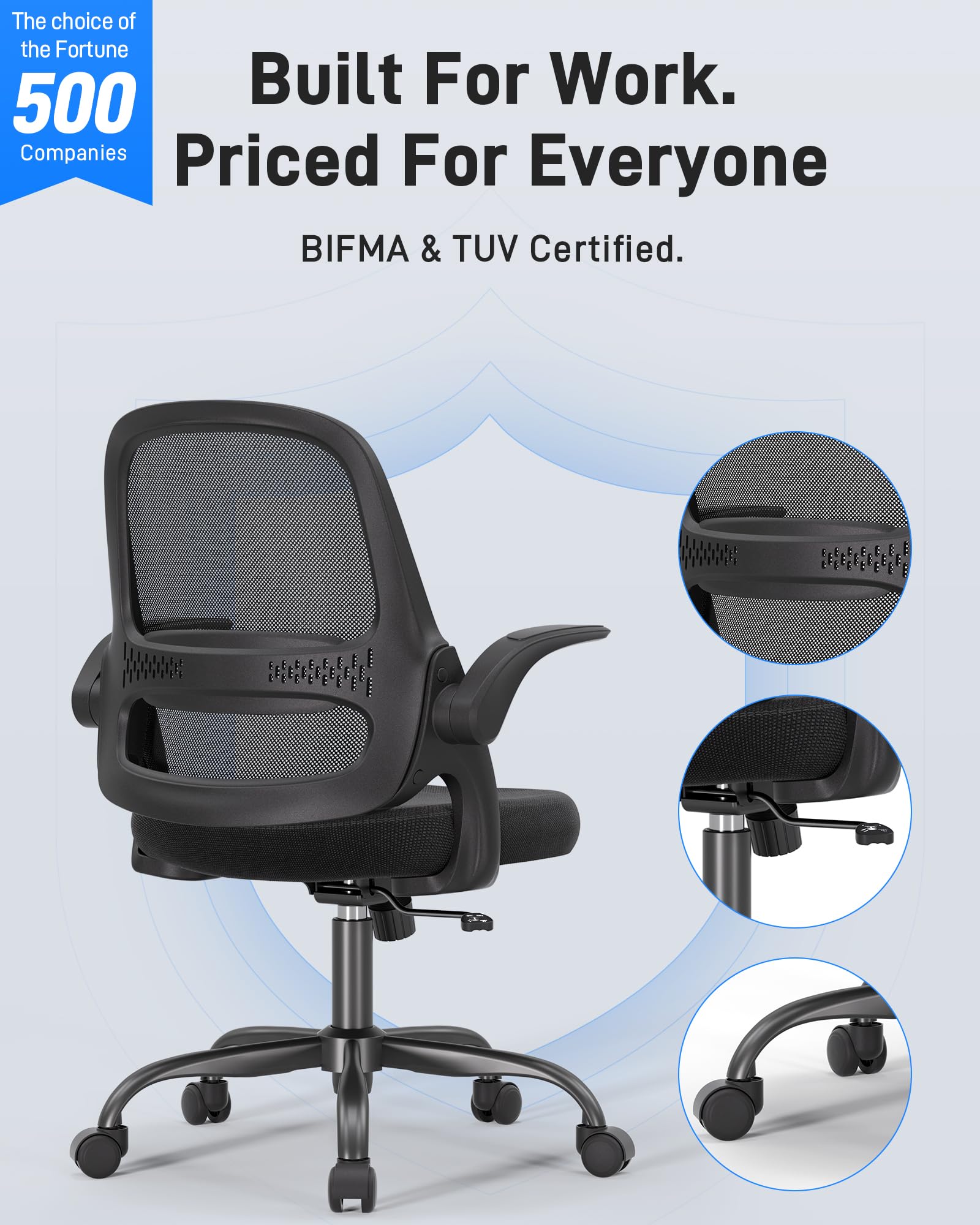 - Space-Saving Flip-Up Armrests: Flip-up armrests let you slide the chair under your desk easily, ideal for small spaces like bedrooms, home offices, dorm rooms, or apartments