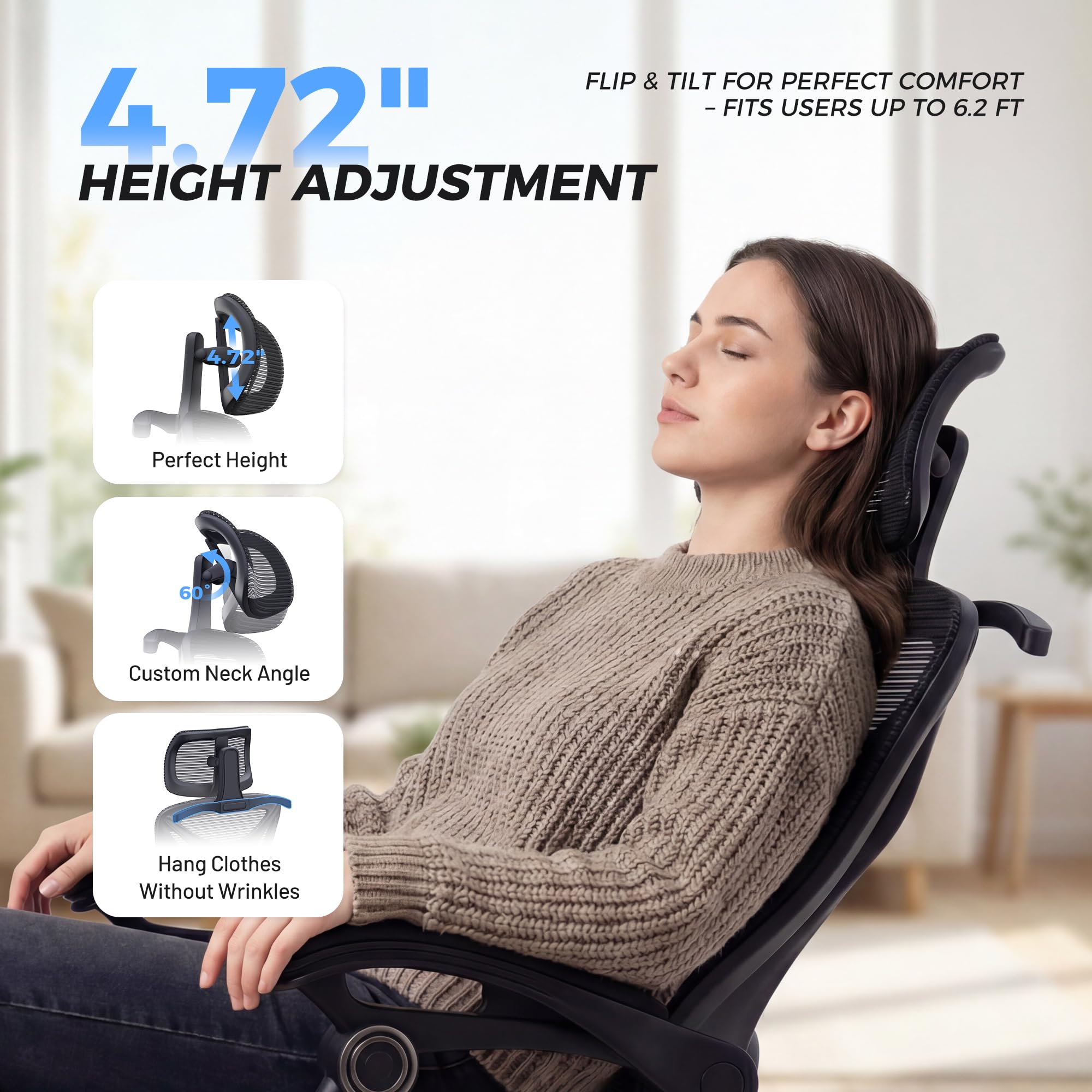 - 【Precise Ergonomic Fit, Optimized for Every Body】A multi-dimensional adjustment system—including seat height, 2-way lumbar support, 4-way headrest, and armrests—ensures a perfect ergonomic posture for users from 5'1" to 6'2". It's notably more accommodating for petite users compared to standard chairs.