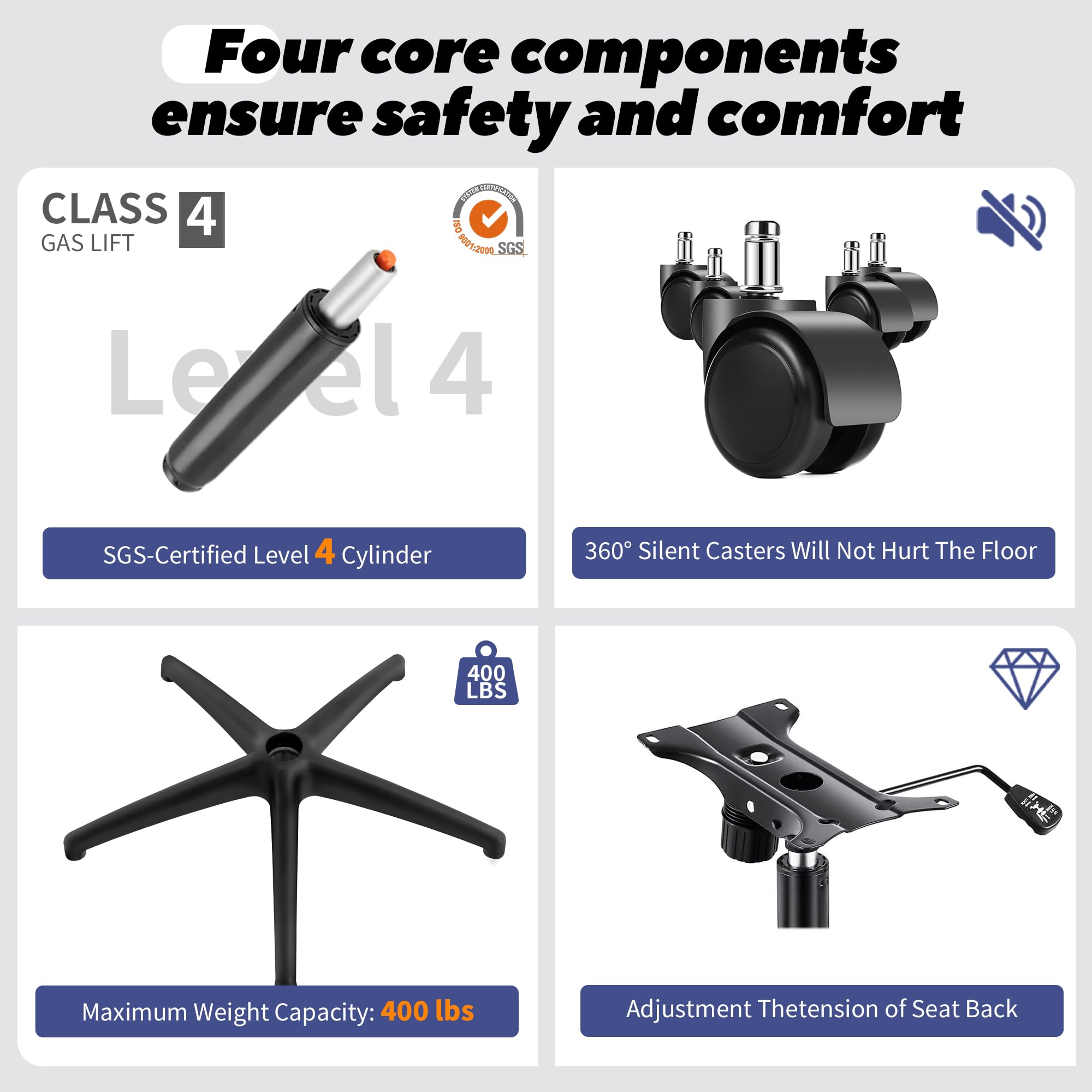 - 400 lbs Weight Capacity: Constructed of premium breathable mesh, the Mesh Office Chair features a reliable height-adjustable pneumatic lever and heavy-duty base, as well as smooth casters to ensure stability without damaging floors or carpets, and a weight capacity of up to 400 pounds to ensure strength and stability. Whether you're working or just relaxing and having fun, enjoy a chair that meets your needs