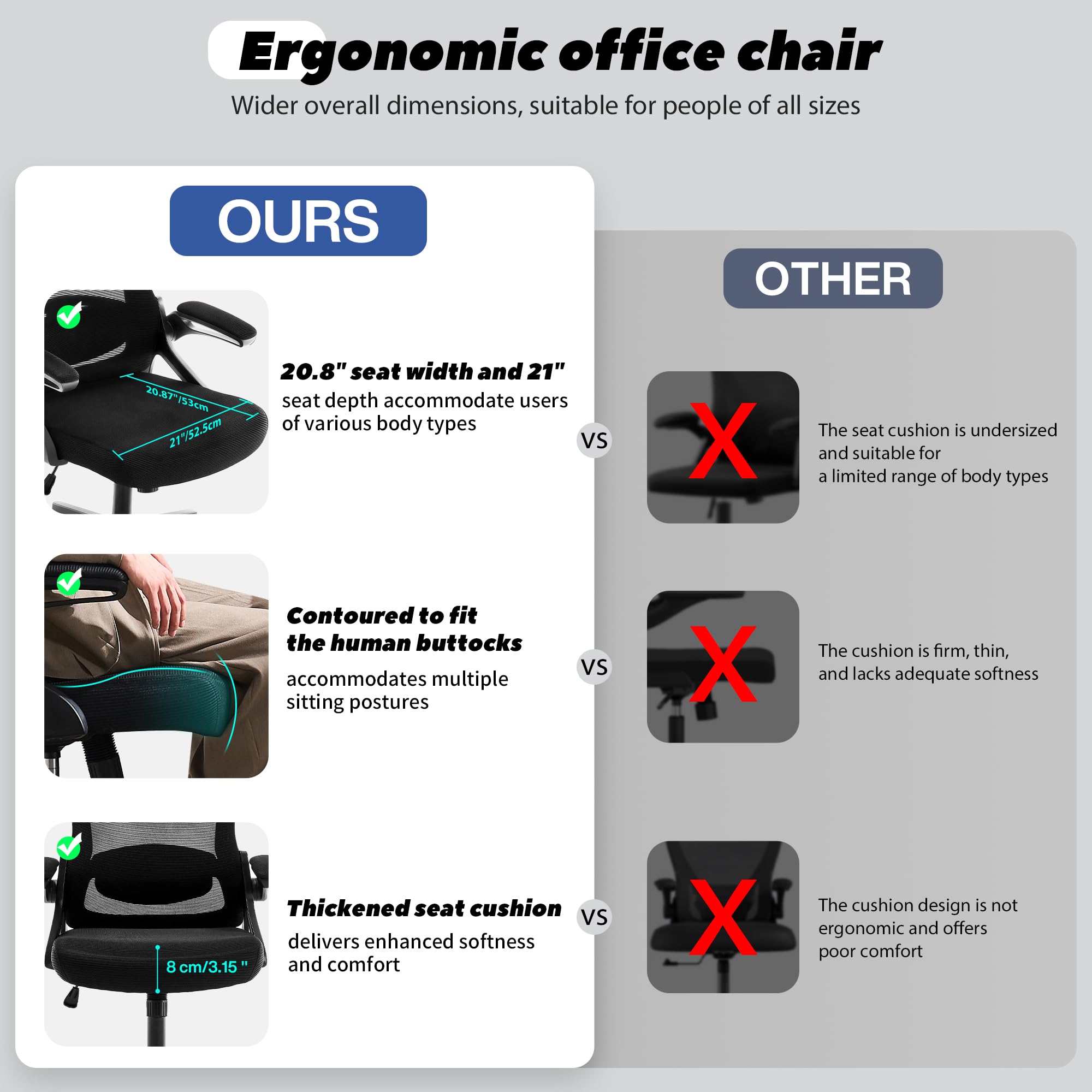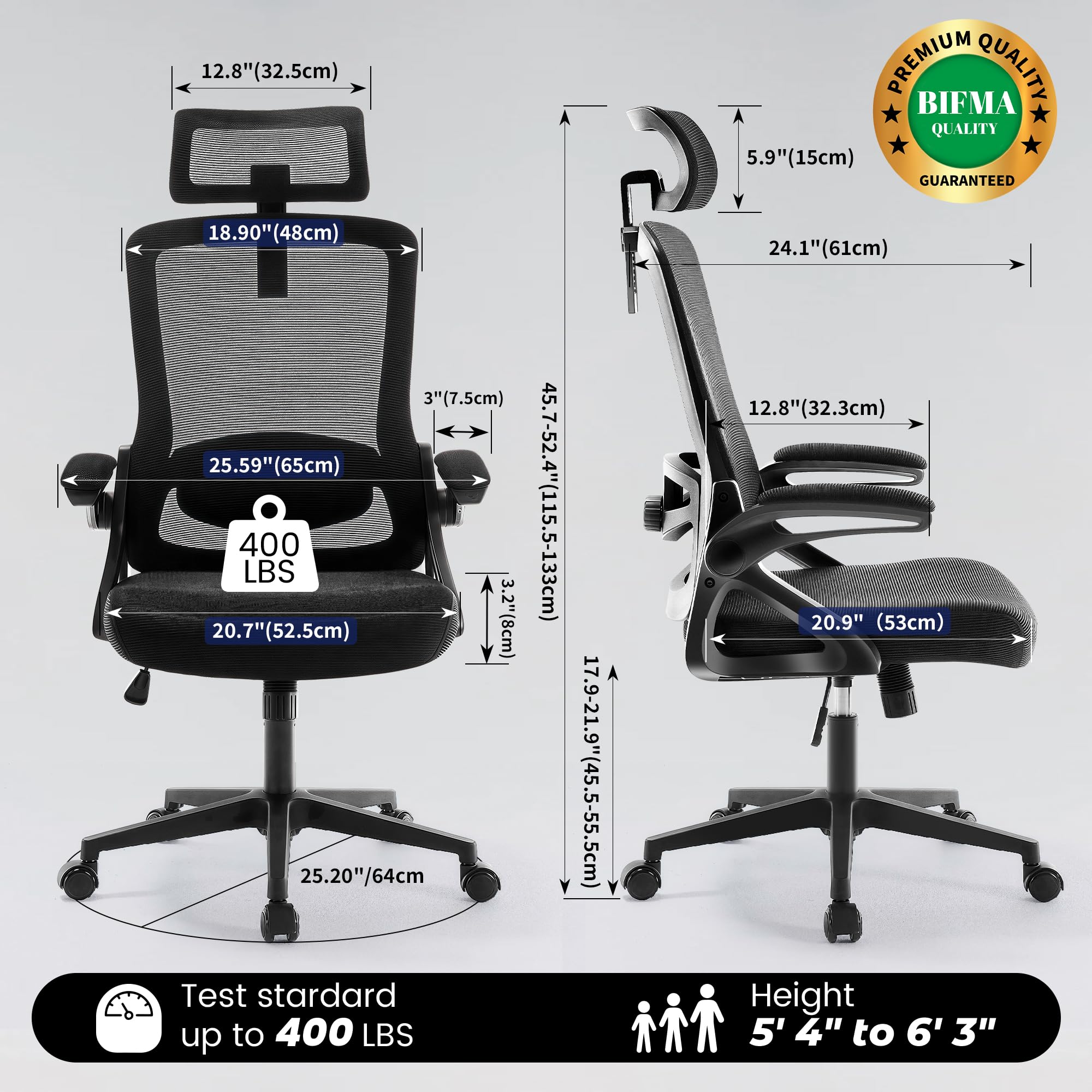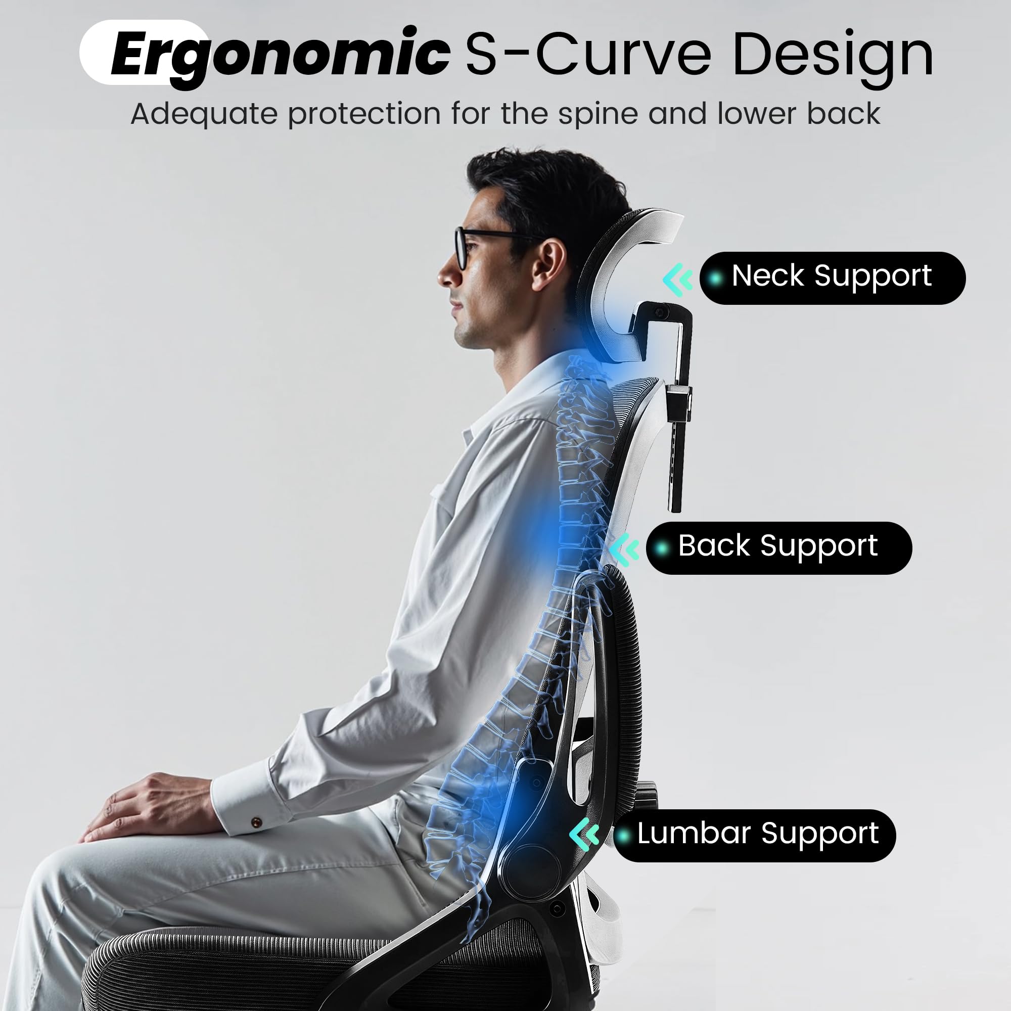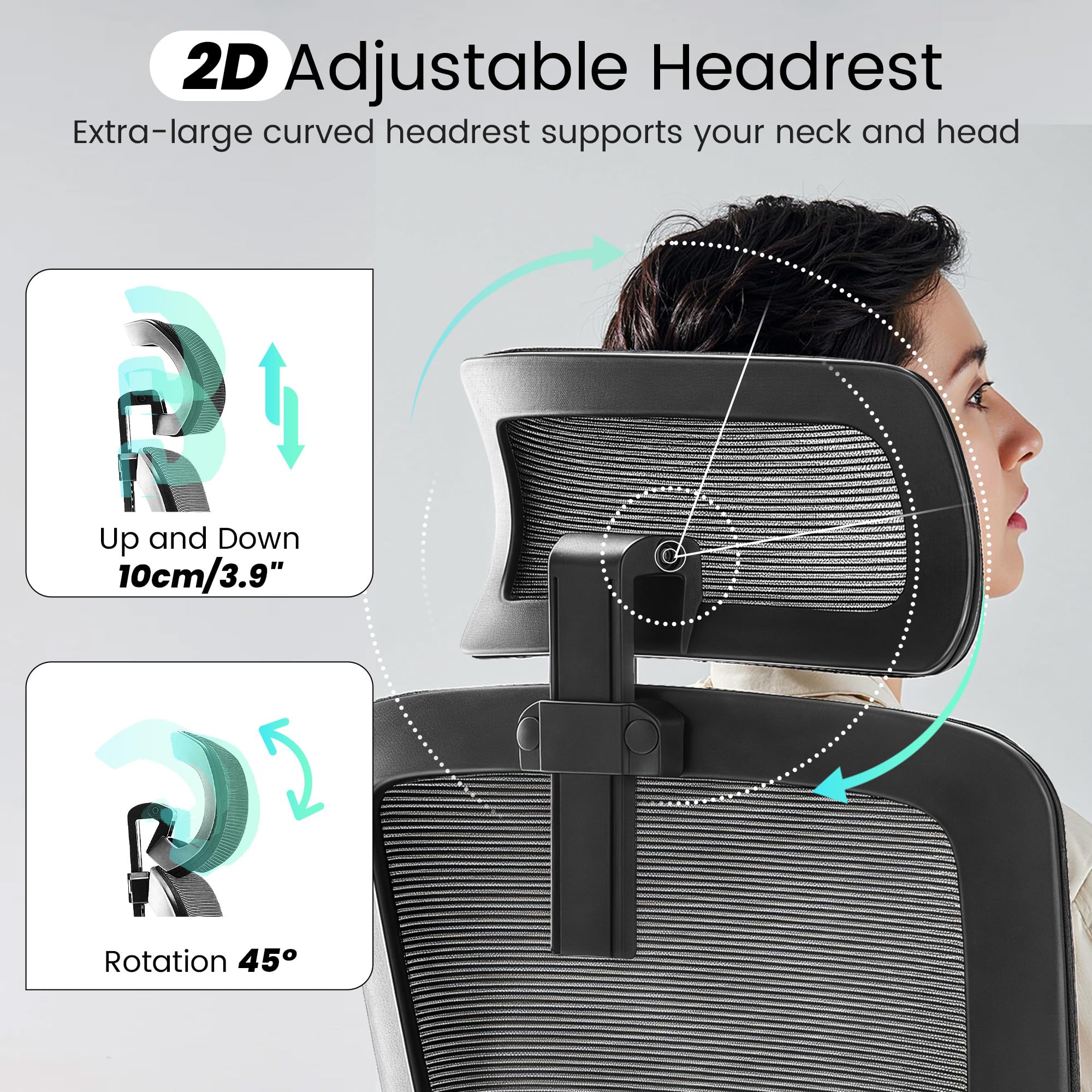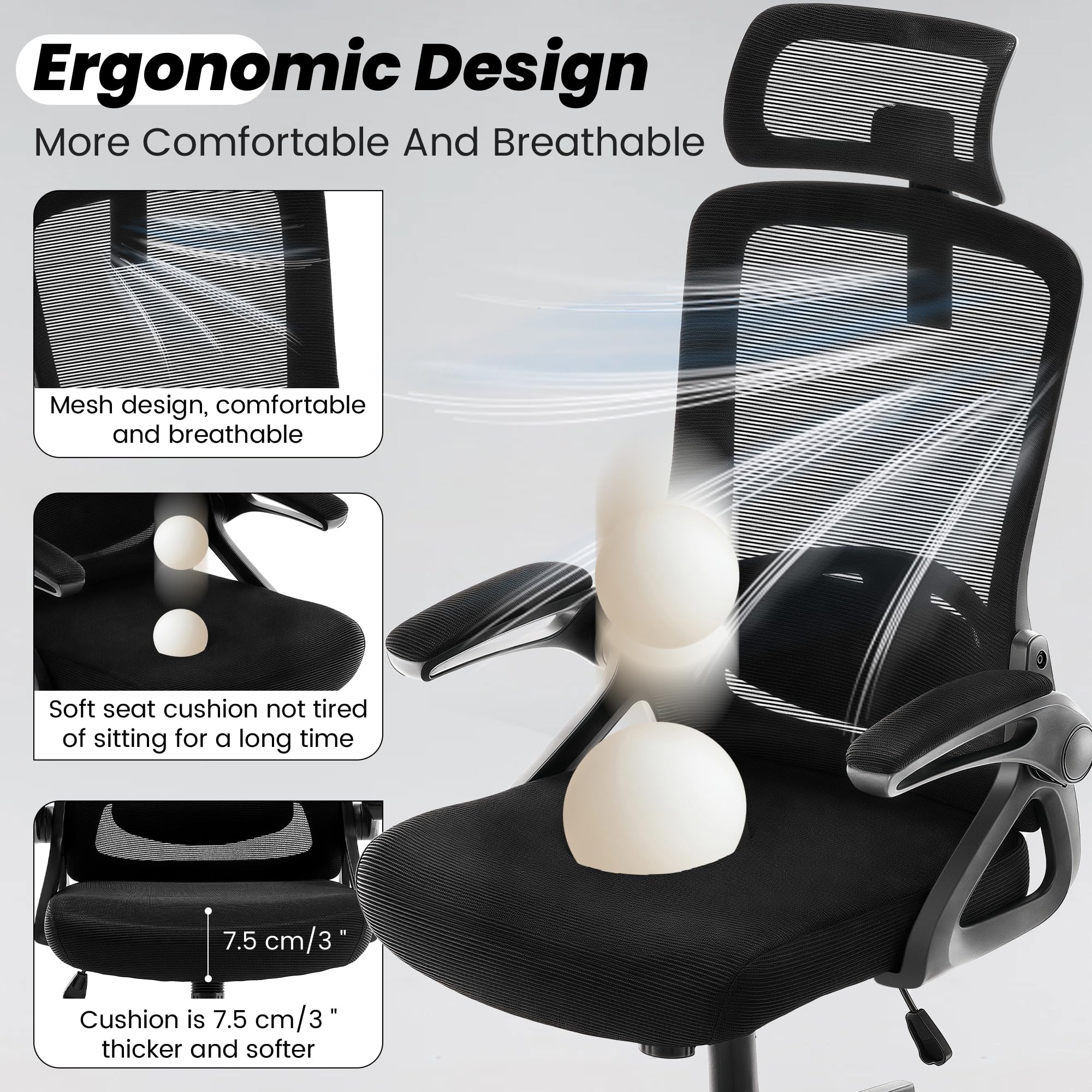 - Ergonomic Office Chair: Our ergonomic office chair provides total comfort and support for your head, back, hips and arms. Suitable for people who are approximately 5' 4" to 6' 3" tall. Easily adjust the seat height, headrest, backrest and reversible armrests to meet different needs and provide comfortable support even during long periods of sitting