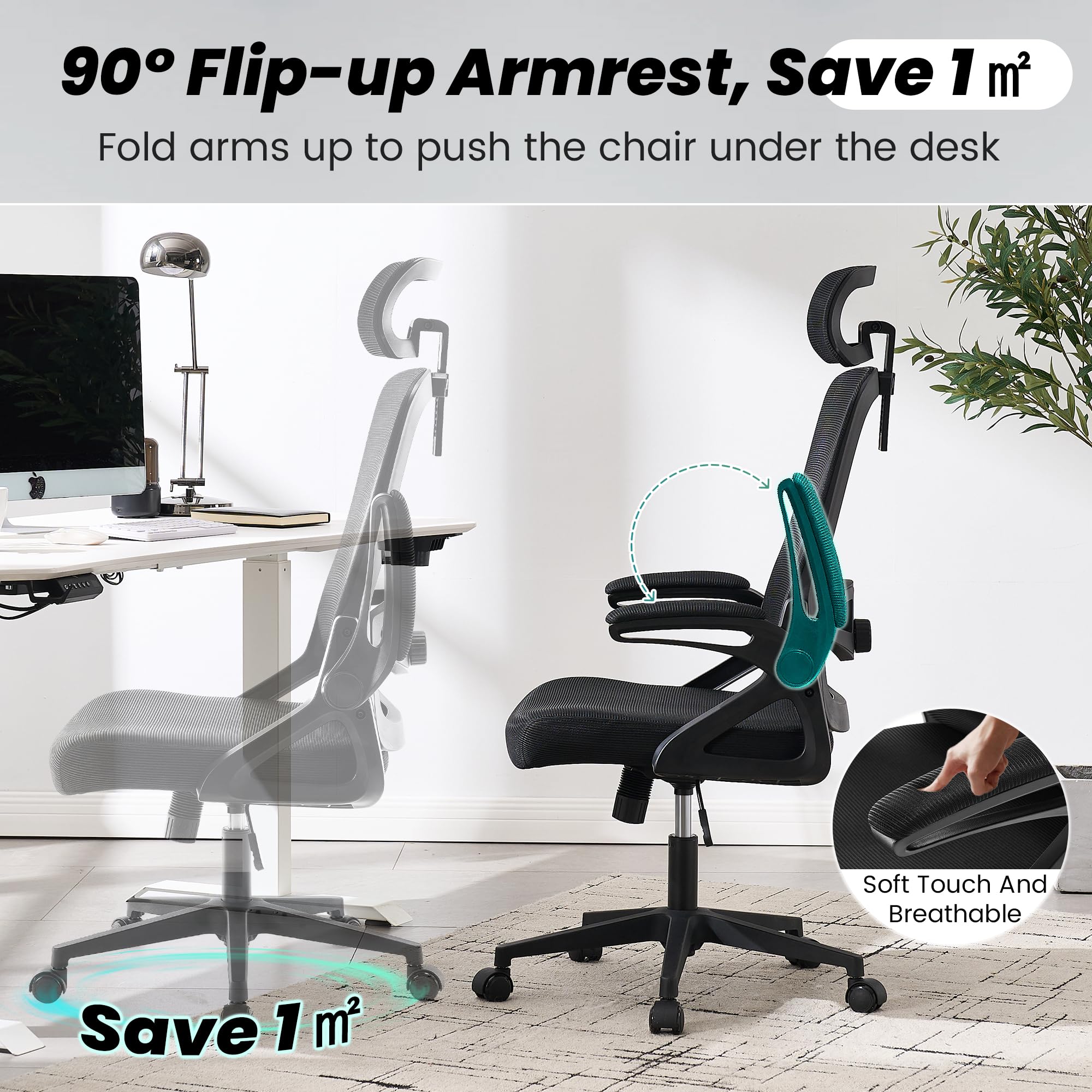 - Multi-Functional Design: This comfortable office chair is equipped with a 125° tilt function and 90° adjustable armrests, allowing you to quickly switch relaxation positions. The swivel chair with casters swivels 360° and is equipped with silent rollers for a wider range of workplaces
