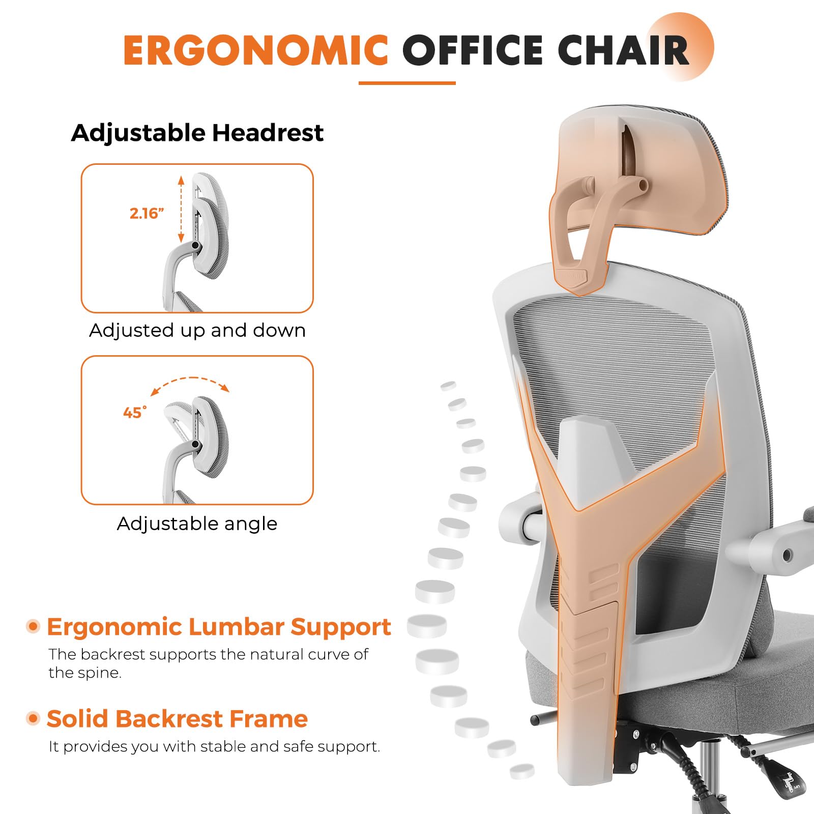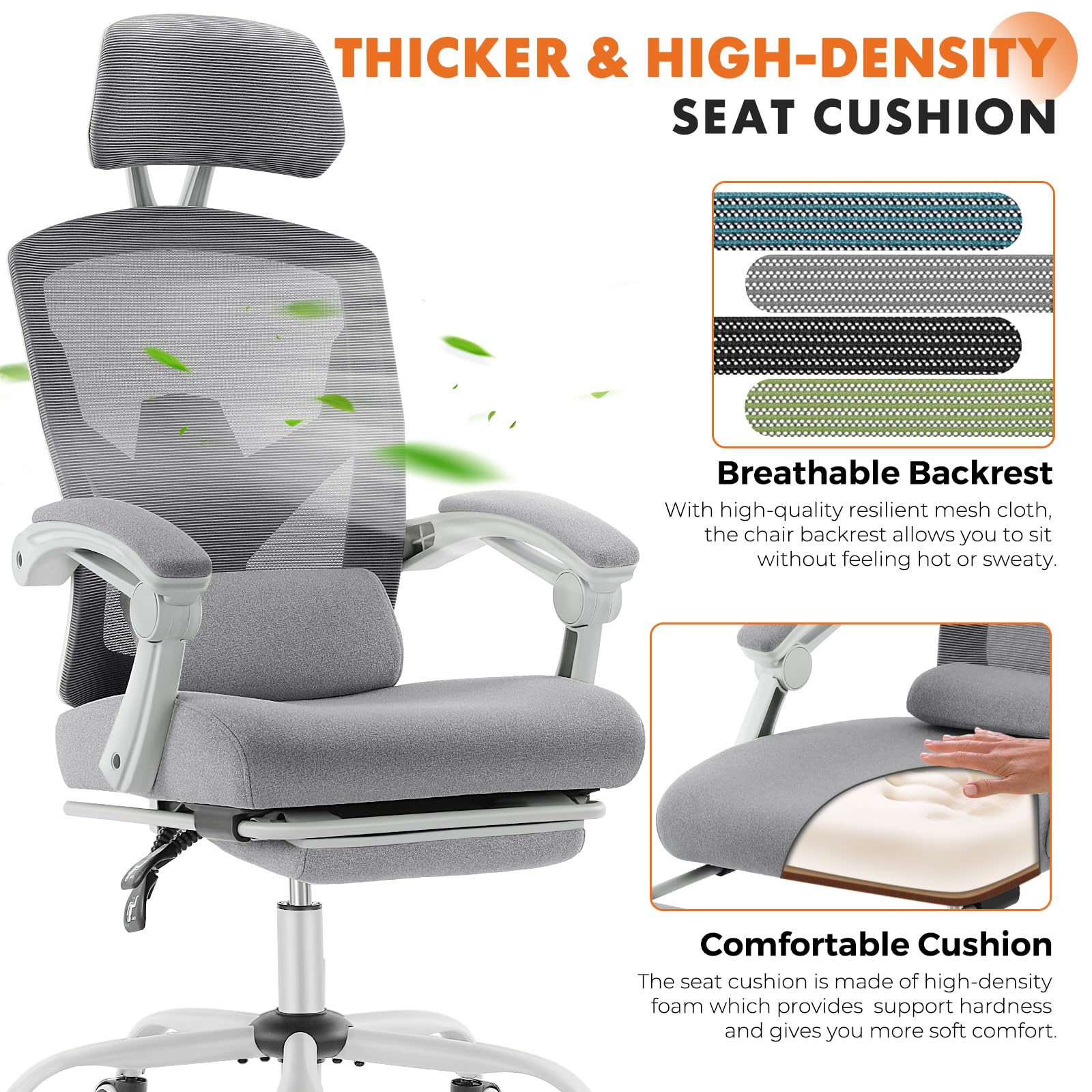 - 【High Quality】Featuring breathable mesh material, the ergonomic desk chair can reduce heat and sweating while the high-density cushion is deformation-resistant for longer use. Padded armrests provide for snug elbow support.