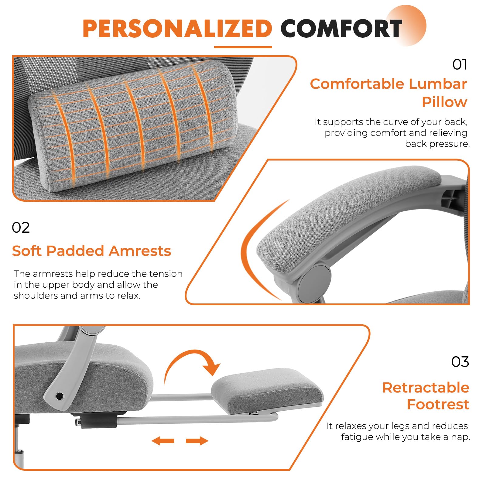 - 【Lockable Reclining Function】Push the lever up and down to lock or unlock the backrest, available for 90-135 degrees of tilt. Collaborate with a retractable footrest, the reclining office chair surely provides a super cosy lunchtime break spot, not only comfy enough for work, but also suitable for reading, game-playing and a short napping.